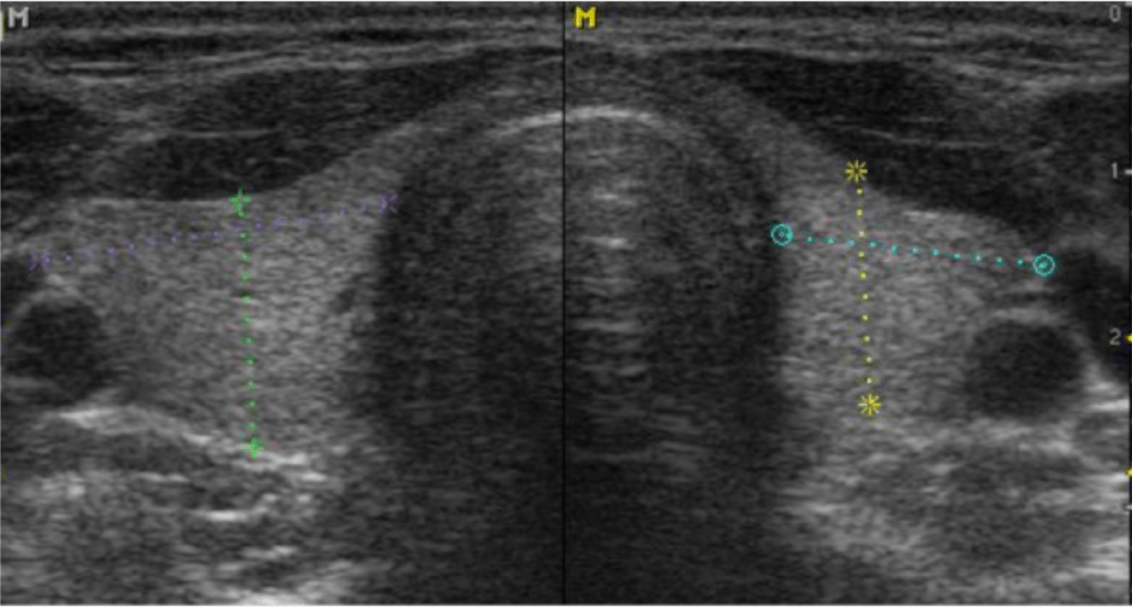 Figura 5. Vista antero-posterior que muestra tiroides con ambos lóbulos normales
